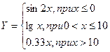 IF X<=0 THEN Y=SIN(2*X*pi/180) ELSE IF X>10 THEN Y=0.33*X ELSE Y=log(X)/log(10)