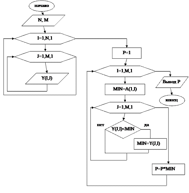 Найти произведение минимальных элементов каждого столбца матрицы Y(N,M).