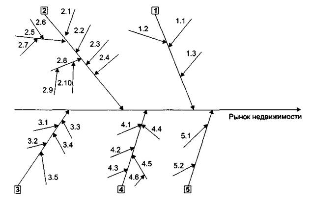 Рис. 2. Причинно-следственные связи между факторами, воздействующими на рынок недвижимости