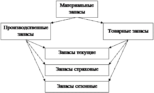 Производственные и товарные запасы подразделяются на текущие, страховые и сезонные [3, с. 188].