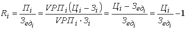 Рентабельность производственной деятельности (окупаемость издержек) (R3) исчисляется путем отношения балансовой (Пб) или чистой прибыли (Пч) к сумме затрат по реализованной или произведенной продукции (З):