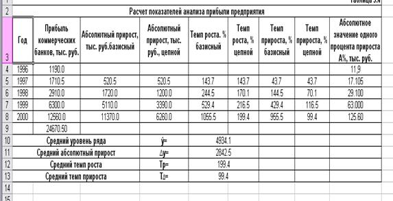 Расчеты показателей анализа динамики прибыли предприятия выполнены с применением пакета прикладных программ обработки электронных таблиц MS Excel в среде Windows.