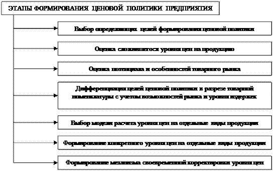 Под формированием ценовой политики предприятия понимается обоснование системы дифференцированных цен на реализуемую продукцию и разработка мероприятий по обеспечению оперативной их корректировки в зависимости от изменения ситуации на товарном рынке и условий осуществления хозяйственной деятельности.