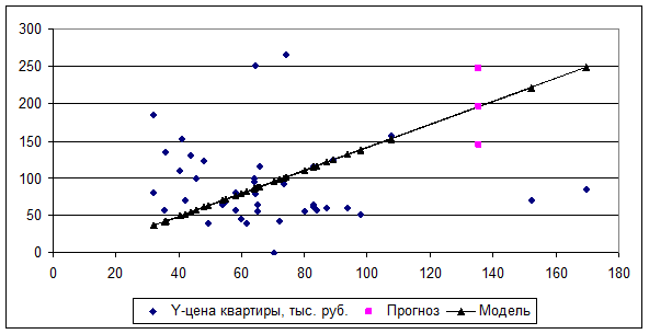 Значит, по уравнению полученной линейной двухфакторной модели изменение результирующего фактора Y (цены квартиры) на 100% объясняется воздействием фактора Х3 (общей площадью квартиры).