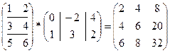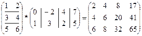 [13] В 5-м примере длина строки первой матрицы равна длине столбца второй матрицы (=2), поэтому эти матрицы можно перемножить. У первой матрицы 3 строки, у второй матрицы 4 столбца, поэтому их произведение – (3*4)-матрица.