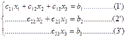 Затем значения x2 и x3 подставить в уравнение (1’) и найти x1 :