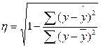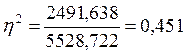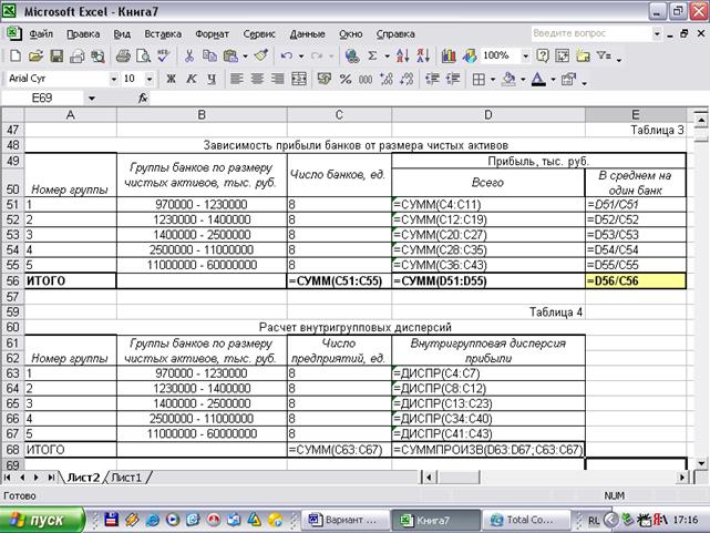 Эмпирическое корреляционное отношение составляет η = 0,692, что свидетельствует о наличии умеренной связи между размером чистых активов и прибылью банков, в которой 47,9% вариации прибыли зависит от вариации размера чистых активов банков.
