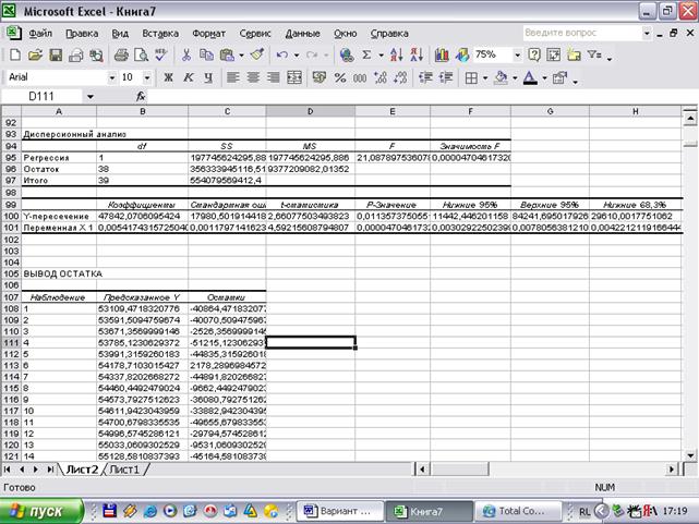 Коэффициент детерминации (R-квадрат) равен 0,357, следовательно, 35,7% вариации прибыли объясняются вариацией размера чистых активов.