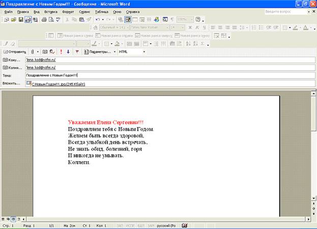 Используя электронную почту, отправьте послание – поздравление с ближайшим праздником, вложив в него файл с рисунком.
