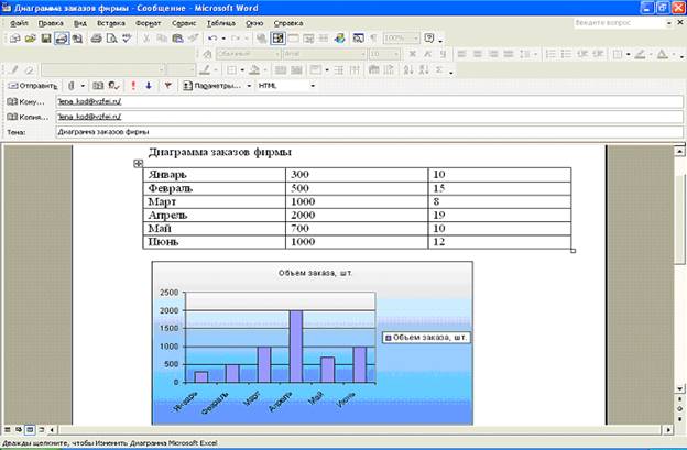 С помощью электронной почты отправьте информацию, представленную в графическом виде (гистограмма, диаграмма или график), используя задания 3.