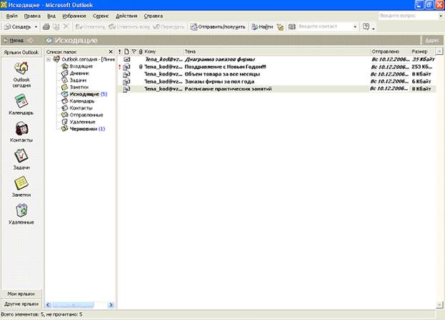 Исходящие в электронной почте.