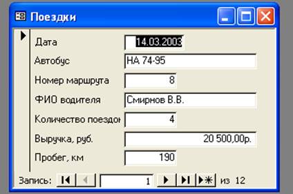 Зададим условия отбора: для поля Дата - #15.03.2003#, а для ФИО водителя – Like “Иванов*”.