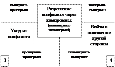- стиль компромисса заключается в таком поведении в ходе разрешения межличностного конфликта, которое умеренно учитывает интересы каждой из сторон. Этот стиль типа «невыигрыш-невыигрыш»;