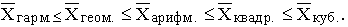 Если рассчитать все виды средних для одних и тех же исходных данных, то значения их окажутся неодинаковыми. Здесь действует правило мажорантности средних: с увеличением показателя степени m увеличивается и соответствующая средняя величина: