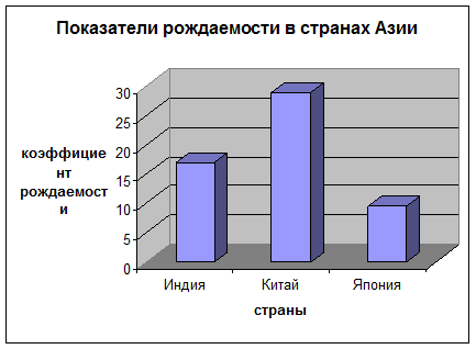 Таким образом видно, что в Индии и Китае показатели рождаемости выше, чем в Японии (рис.2 )