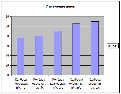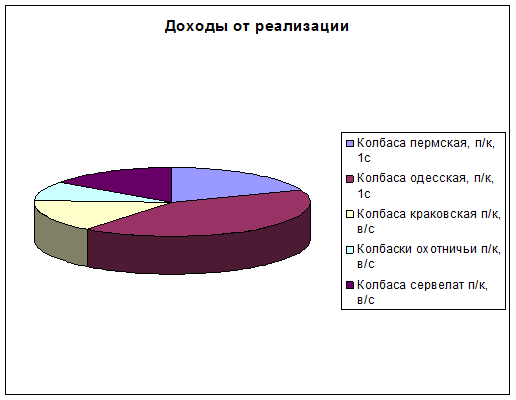 4. Построить круговую диаграмму доходов от реализации колбасных изделий и гистограмму изменения цены по изделиям.