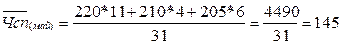 Численность работников предприятия, начавшего свою деятельность с 10 мая, по списку составляла: 10 – 21 мая – 220 чел., 22 – 25 мая – 210 чел., 26 – 31 мая – 205 чел. Среднесписочная численность работников предприятия составляла, чел.: