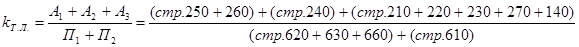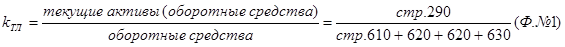 Коэффициент текущей ликвидности (общего покрытия) отражает соотношение оборотных средств организации и ее текущих пассивов или характеризует платежеспособность организации.