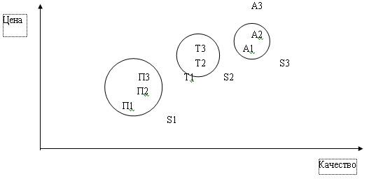 Рис.1. Карта позиционирования представленных услуг на рынке