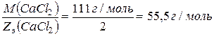 3) Находим молярную массу и молярную массу эквивалентов CaCl2, эквивалентное число для CaCl2 zэкв. = 2.