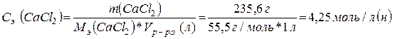 Ответ: С (СaCl2) = 2,12 моль/л; Сэ (СaCl2) = 4,25 моль/л (н).
