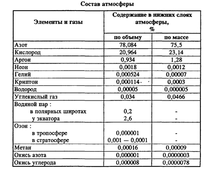 Атмосфера (греч. “атмос” — пар) — газовая оболочка Земли, состоящая из смеси различных газов, водяных паров и пыли (табл. 1.3 по Н. Реймерсу, 1990). Общая масса атмосферы'— 5,15•10'5т. На высоте от 10до50лм, с максимумом концентрации на высоте 20—25 км, расположен слой озона, защищающий Землю от чрезмерного ультрафиолетового облучения, гибельного для организмов.