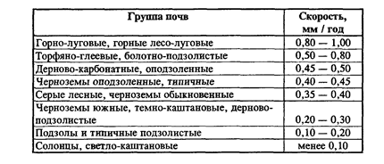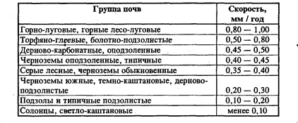 Таблица1.4.Скорость формирования гумусового горизонта почв Русской равнины ( по . А.Н. Геннадиеву и др., 1978)