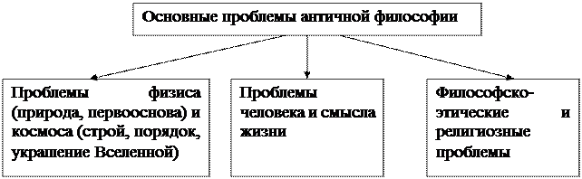 Задание третье. Изобразите схематически основные проблемы античной философии