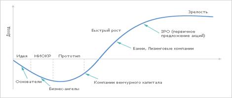 Часто предприятия, не имея других альтернатив, вынуждены финансировать развитие за счет собственных средств. Однако в будущем по мере ужесточения конкуренции и прогнозируемого увеличения издержек на заработную плату, собственных ресурсов у многих хозяйствующих субъектов будет оставаться все меньше. Соответственно, все острее будет необходимость формирования инвестиционной инфраструктуры на всех этапах развития компании, начиная от стадии научно-исследовательских работ, когда, в основном, требуется капитал бизнес-ангелов, и, заканчивая зрелостью, где нужен развитый фондовый рынок (рис. 3.5).