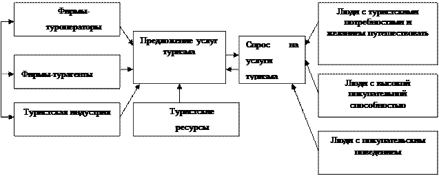 На рынке туристских услуг товаром является тур – комплекс услуг, правом воспользоваться которыми предлагается клиенту. Данный комплекс является продуктом собственно туристической фирмы, которая создает его из промежуточных продуктов – организации переезда, питания, проживания, экскурсионной программы и других.