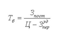 Расчет точки безубыточности в натуральном выражении рассчитывается по формуле: