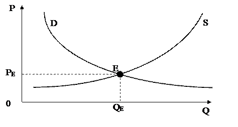 Если же в начальный момент времени цена равна PE. Если на рынке установилась ситуация, которая задается парой чисел (PE, QE), то А=0 и, если выполняется условие ceteris paribus, то рынок находится в равновесии. Отраслевое равновесие всегда задается парой чисел, а именно: равновесная цена и равновесный объем закупок (равновесный объем продаж).