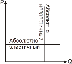 Существует два крайних случая эластичности. В первом случае, когда изменение цены не приводит ни к какому изменению количества спрашиваемой продукции, можно говорить о совершенно неэластичном спросе. Кривая совершенно неэластичного спроса вертикальна. Примером является спрос хронически больных людей на лекарства. Во втором случае, когда небольшое понижение цены товара приводит к предельному увеличению закупок этого товара, речь идет о совершенно эластичном спросе. Кривая совершенно эластичного спроса горизонтальна.