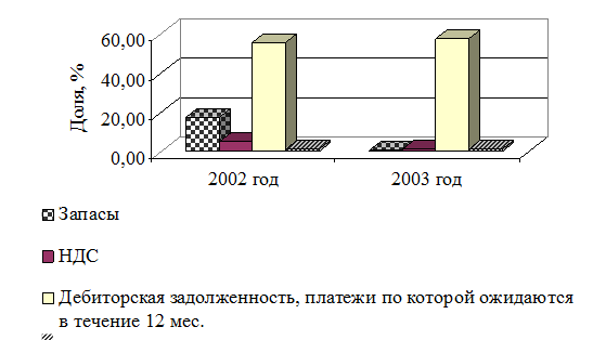 При общем снижении доли оборотных средств на предприятии наблюдается увеличение удельного веса денежных средств в составе оборотного капитала с 1,30 до 1,70% в сравнении с началом периода. Увеличение удельного веса денежных средств характеризует повышение мобильности активов и, следовательно, степени платежеспособности предприятия по текущим обязательствам.
