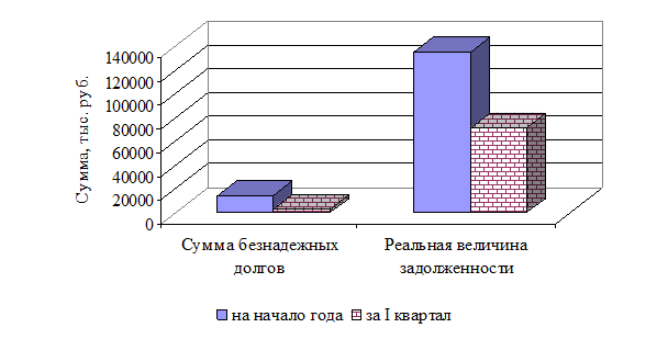 Реальная величина задолженности, тыс. руб. за I квартал |