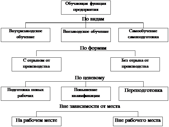 Подготовка новых рабочих осуществляется на предприятии по индивидуальной, групповой и курсовой формам обучения, включающих не только производственное обучение, но и изучение теоретического курса в объеме, обеспечивающем освоение профессиональных навыков начальной квалификации, необходимых в условиях механизированного и автоматизированного производства. Сроки такого обучения составляют 3 месяца в зависимости от сложности профессии и специальности. Заканчивается обучение сдачей квалификационного экзамена и присвоении рабочему определенного тарифного разряда.