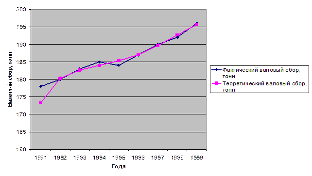 2) Отразить на графике фактический валовой сбор зерновых, его основную тенденцию и ожидаемое значение на ближайшую перспективу.