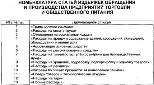 В целях планирования, учета и отчетности издержек обращения и производства организациям торговли рекомендуется применять следующую номенклатуру статей издержек обращения и производства.