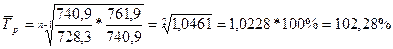 Индекс цен находим исходя из взаимосвязи соответствующих индексов – индекса стоимости, индекса физического объема и индекса цен: