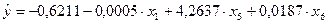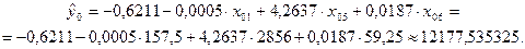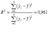 где ry,x1=(-0,00434); ry,x5=0,75145; ry,x6=0,962033— коэффициенты корреляции между парами переменных Y–X1, Y–X5 и Y–X6 соответственно (см. табл. 1); R2=0,961495065— множественный коэффициент детерминации (см. табл. 3).