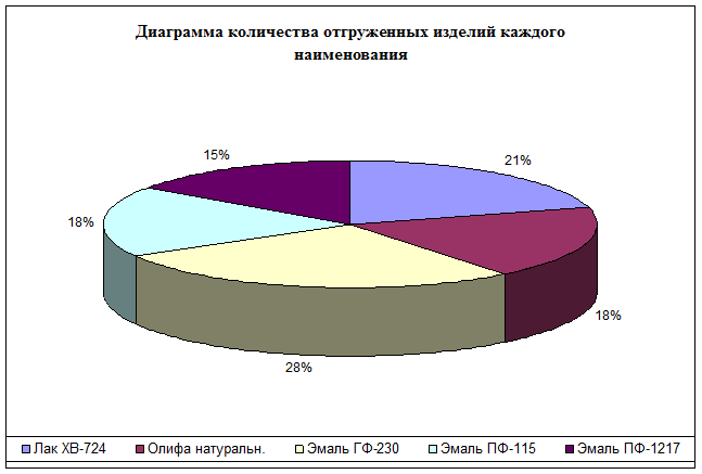 4. Построить круговую диаграмму количества отгруженных изделий каждого наименования.