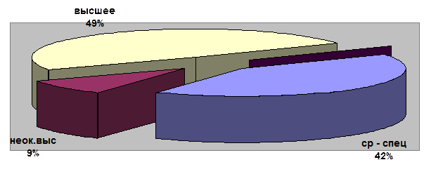 Рис. 3.2. Квалификация сотрудников по уровню образования в 2003 году.