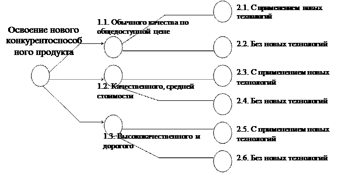 Рисунок 2 – "Дерево (граф) целей " для различных вариантов производства нового продукта на условном предприятии