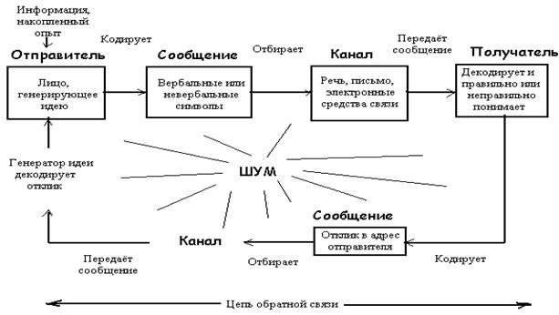 При обмене информацией отправитель и получатель проходят несколько взаимосвязанных этапов. Их задача — составить сообщение и использовать канал для его передачи таким образом, чтобы обе стороны поняли и разделили исходную идею. Это трудно, ибо каждый этап является одновременно точкой, в которой смысл может быть искажен или полностью утрачен. Указанные взаимосвязанные этапы таковы: