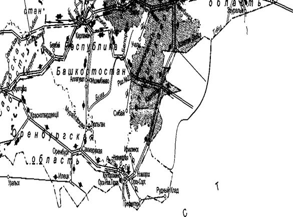 Большую роль в транспортировке нефти, нефтепродуктов, природного и попутного газа играет трубопроводный транспорт. Нефтепроводы берут свое начало в центрах нефтепереработки и имеют своими исходными пунктами эксплуатируемые нефтяные месторождения. Для Оренбургской области главным является Орское месторождение и от него отходят трубопроводы за пределы области. Крупнейший из них – «Союз», подающий оренбургский газ в Восточную Европу.