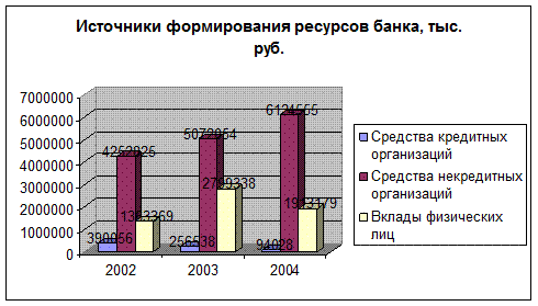 Таким образом, к концу рассматриваемого периода кредитная политика банка продолжает оставаться агрессивной. Основным источникам финансирования деятельности банка остаются привлеченные средства, доля которых составляет 54%. Основным видом кредитных операций составляет кредитование юридических лиц. При этом на кредиты полностью расходуются средства клиентов, а также 20% собственных средств банка (значение 1,2 уровня кредитной активности использования привлеченных средств в 2004 году.