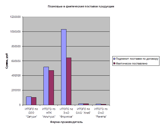 Сохраним полученную диаграмму на отдельном листе, которому присвоим имя Плановые и фактические поставки.