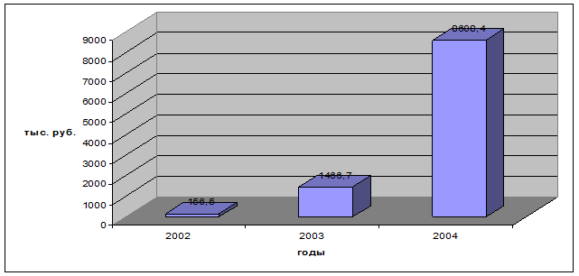- валовая прибыль в 2003 году выросла на 4216618 руб. или в 20,76 раза, а в 2004 году – на 6398000 руб. или в 2,44 раза