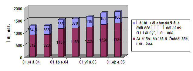 ООО «Народная компания» – динамично развивающаяся коммерческая организация. Если проследить динамику изменения объемов продаж предприятия за несколько лет, то можно увидеть, что объемы его деятельности непрерывно увеличиваются (см. рисунок 1). На конец 2005 года объем продаж компании по сравнению с началом 2003 года увеличился в 2,2 раза. Среднеквартальный темп роста объема продаж в 2003-2005 годах составляет 116%.