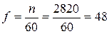 Число оборотов вала электродвигателя = 2820 об/мин;